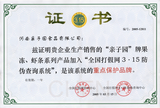 ★在全國打假網(wǎng)“重點(diǎn)保護(hù)產(chǎn)品(單位)”活動(dòng)中被授予2005年“重點(diǎn)保護(hù)產(chǎn)品(單位)”稱號(hào)。